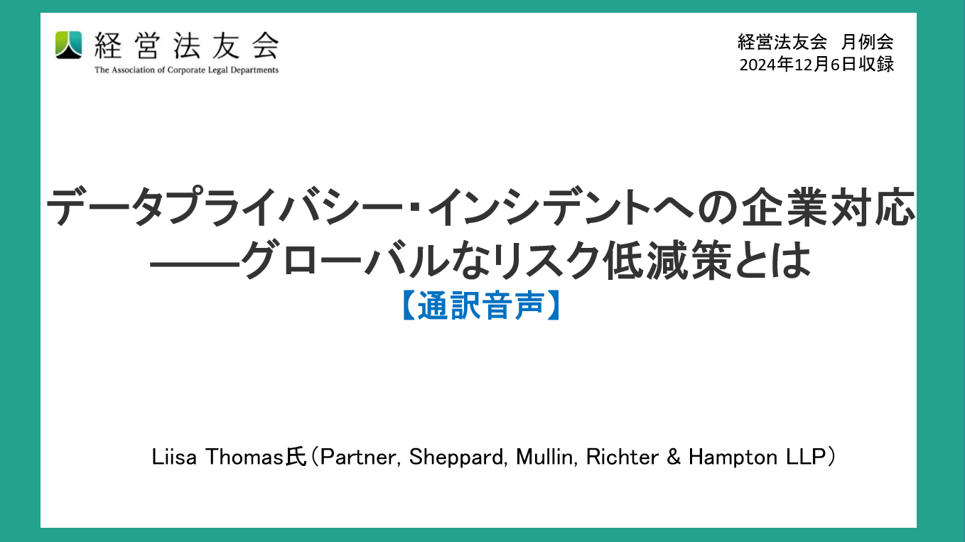 ・講師:Liisa Thomas氏(Partner, Sheppard, Mullin, Richter & Hampton LLP)